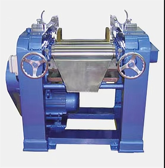 三輥研磨機適用膏體或高粘度物料使用。該機通過水平的三根輥筒的表面相互擠壓,手動式調(diào)節(jié)輥筒之間的間距,以不同速度的摩擦達(dá)到研磨效果??裳b有緊急制動按鈕,防止落入異物導(dǎo)致的設(shè)備損壞。輥子使用特殊硬質(zhì)合金澆鑄而成;也可以使用大理石材質(zhì)。傳動采用鏈條傳動、齒輪調(diào)輥。